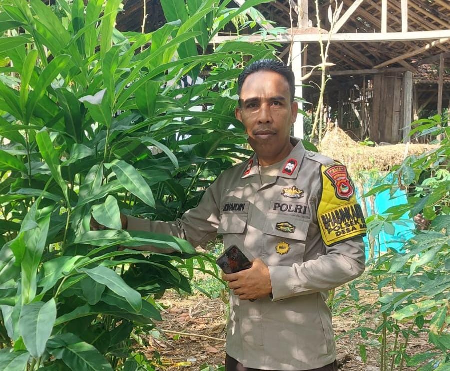 Bhabinkamtibmas Polsek Bolo Polres Bima Polda NTB Aipda Junaidin aktif melaksanakan kunjungan ke warga dalam rangka mendukung program pemanfaatan pekarangan.