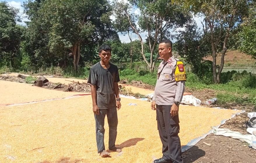 Hal itu ditunjukkan oleh Bhabinkamtibmas Polsek Soromandi Aiptu Budianto SH pada Minggu 29 Juni membantu dan mengecek proses penjemuran jagung warga binaan di Desa Sai Kecamatan Soromandi Kabupaten Bima.
