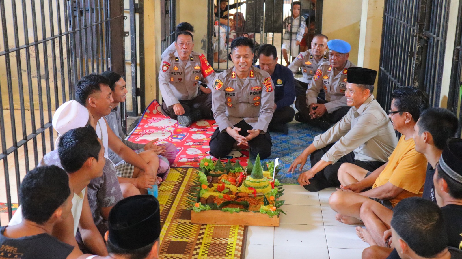 Kapolres mengunjungi ruang tahanan dan memberikan tumpeng kepada tahanan. Dalam kesempatan ini, Kapolres juga menyampaikan pesan tentang pentingnya introspeksi diri atas perbuatan yang telah di lakukan dan mau berubah pola tindak kedepan untuk lebih baik dan bermanfaat sehingga dengan perubahan pola tindak maka rekan – rekan semua siap untuk kembali ke masyarakat dengan kehidupan yang lebih baik.