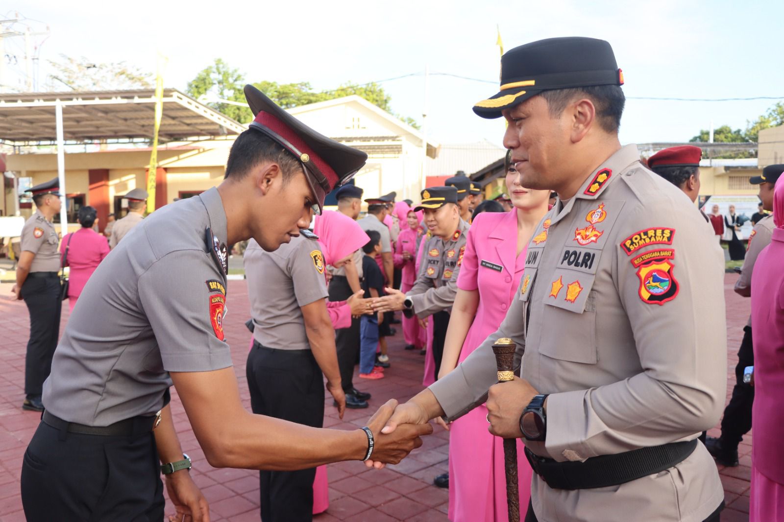 Dalam amanatnya, Kapolres Sumbawa menyampaikan rasa syukur dan selamat kepada para personel yang telah dinaikkan pangkatnya. Beliau menegaskan bahwa kenaikan pangkat bukanlah sebuah hak otomatis, melainkan bentuk penghargaan dari pimpinan Polri atas dedikasi dan prestasi kerja yang sesuai dengan aturan organisasi.