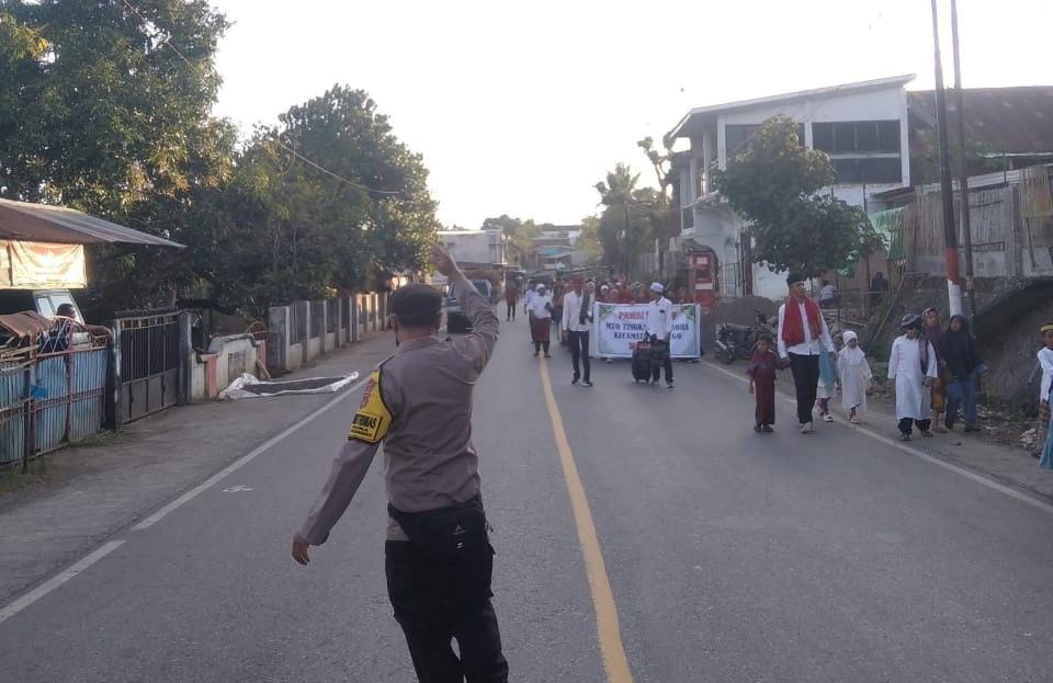 Bhabinkamtibmas Polsek Donggo Polres Bima Polda NTB melaksanakan pengamanan pelaksanaan Pawai Ta’aruf MTQ tingkat Desa Rora Kecamatan Donggo Kabupaten Bima.