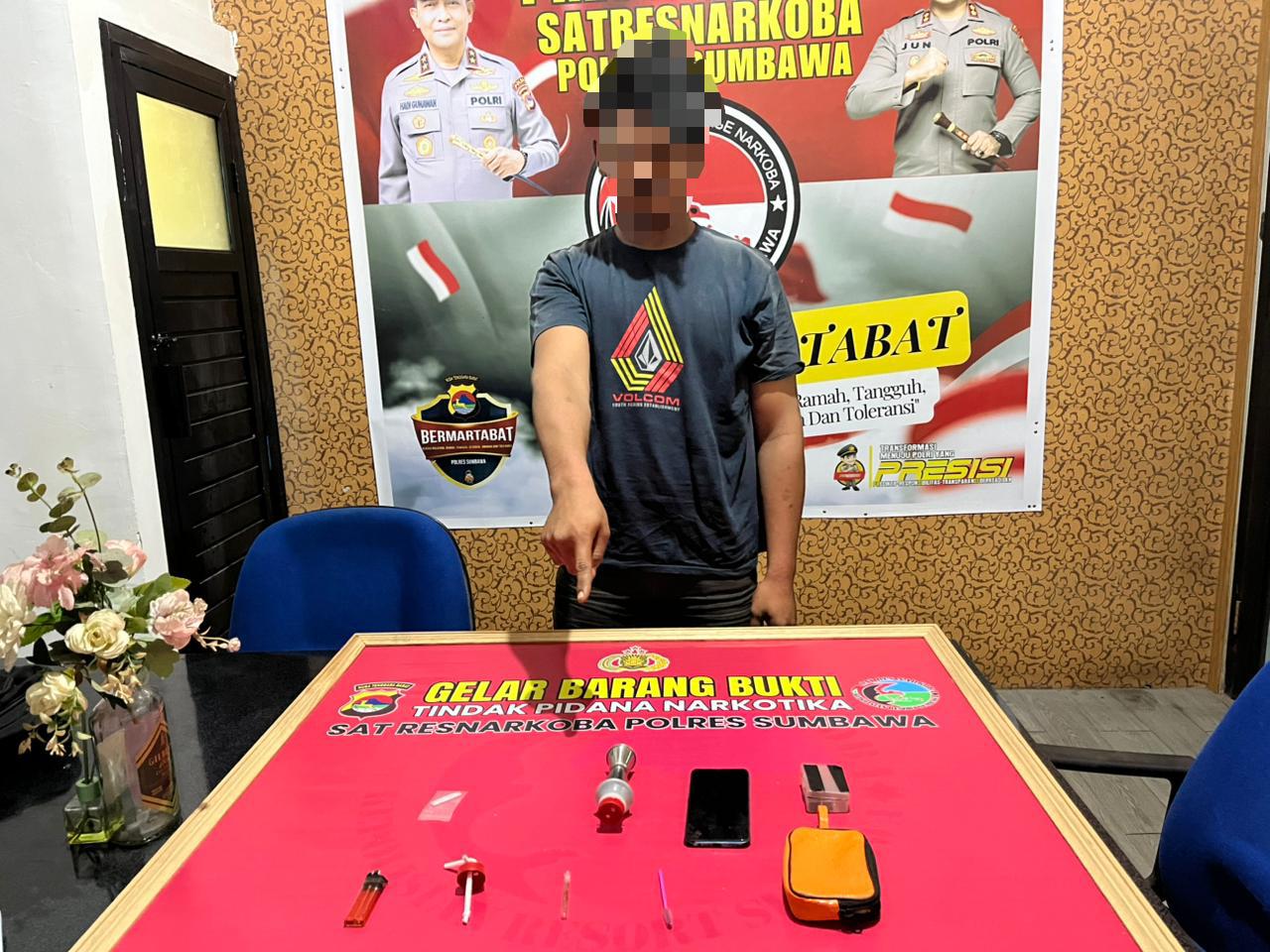 Kapolres Sumbawa AKBP Bagus Nyoman Gede Junaedi, S.H.,S.I.K.,M.A.P., melalui Kasat Resnaskoba IPTU Harirustaman, S.H., menyampaikan bahwa “Pihak kepolisian menerima informasi dari masyarakat bahwa adanya hal yang mencurigakan dari laki laki yang diduga kerap menggunakan narkotika.” ucap Kasat.
