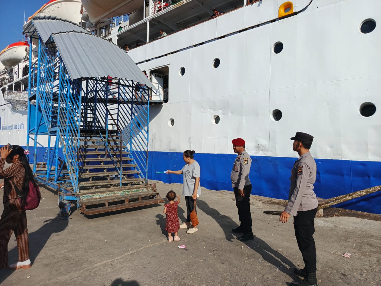 Bima Kota, NTB (3 Juli 2025) – Polsek Kawasan Pelabuhan Laut Bima melaksanakan pengamanan kegiatan embarkasi dan debarkasi kapal penumpang KM. BINAIYA yang bersandar di Pelabuhan Bima, Jalan R.E. Marthadinata, Kelurahan Tanjung, Kecamatan Rasanae Barat, Kota Bima, Kamis (3/7/2025) pukul 07.00 WITA.