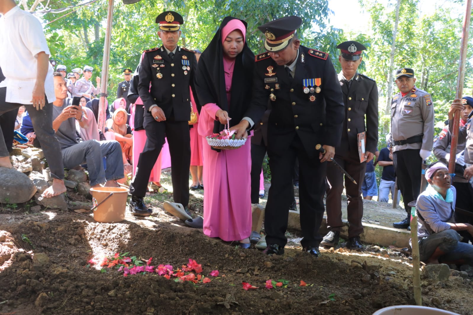 Upacara pemakaman dipimpin langsung oleh Kapolres Sumbawa Barat AKBP Zulkarnain, S.I.K, sebagai bentuk penghormatan terakhir kepada almarhum yang telah mengabdi dengan penuh dedikasi dan loyalitas dalam institusi Kepolisian Negara Republik Indonesia.