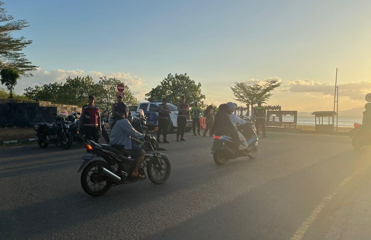 Patroli gabungan itu difokuskan titik rawan kemacetan dan atau disaat aktivitas masyarakat meningkat seperti di sepanjang jalan pantai Kalaki hingga patung kuda Desa Panda Kecamatan Palibelo Kabupaten Bima.