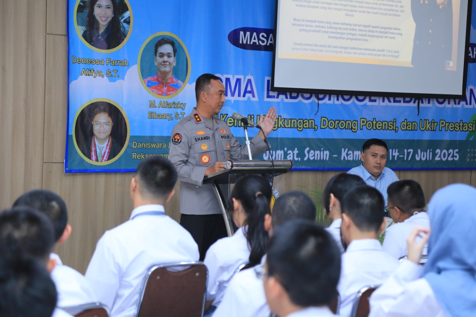 Sebelumnya, Kadivhumas Polri Irjen Pol. Sandi Nugroho mengisi kuliah umum di kalangan Siswa SMA Labschool Kebayoran. Kegiatan ini dilakukan dalam rangka Masa Pengenalan Lingkungan Sekolah (MPLS) sekaligus bentuk tindakan preemtif yang dilakukan Polri.