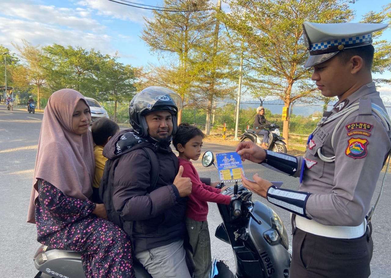 Lanjutnya dalam kegiatan itu juga sejumlah personel membagikan brosur operasi patuh Rinjani 2025 yang dimulai sejak Senin 14 Juli hingga 27 mendatang.