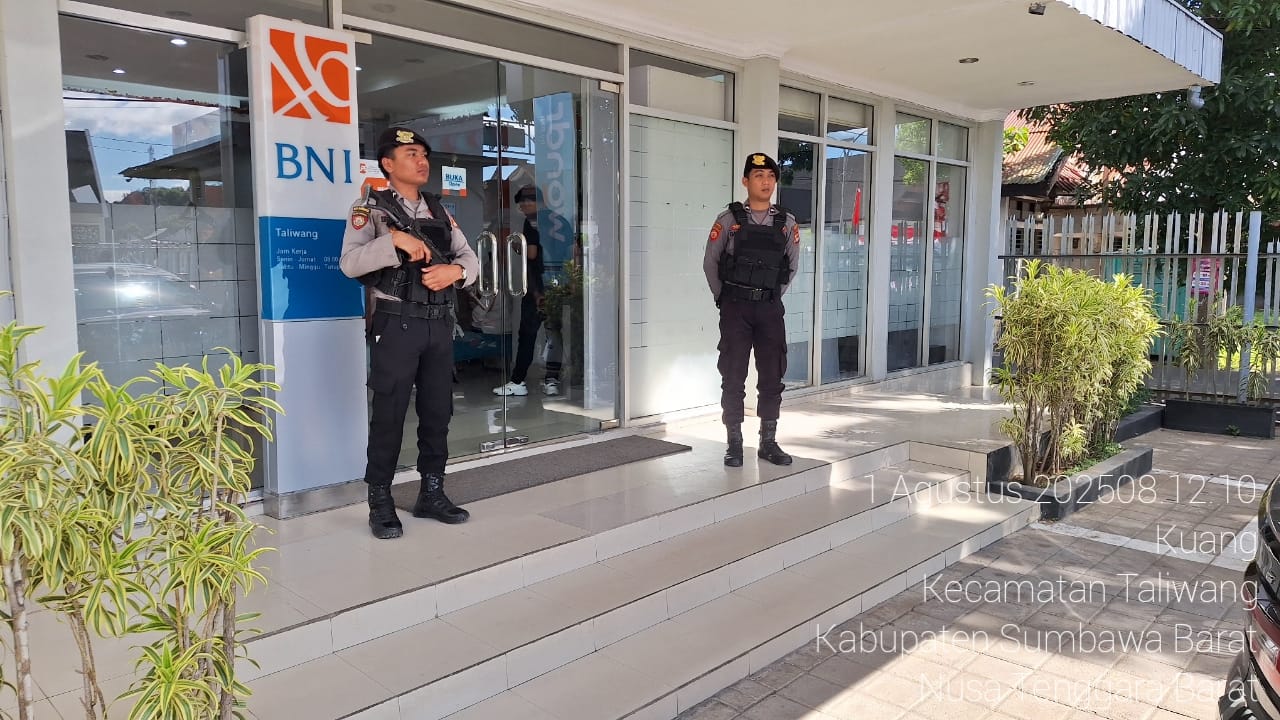 Sumbawa Barat, NTB – Untuk memastikan keamanan dan ketertiban di objek vital, personel Sat Samapta Polres Sumbawa Barat melaksanakan kegiatan Pengamanan Objek Vital (PAM Obvit) di Kantor Cabang Pembantu (KCP) Bank BNI Taliwang, Kecamatan Taliwang, Kabupaten Sumbawa Barat, pada Jumat (1/8/2025) pukul 08.00 WITA.