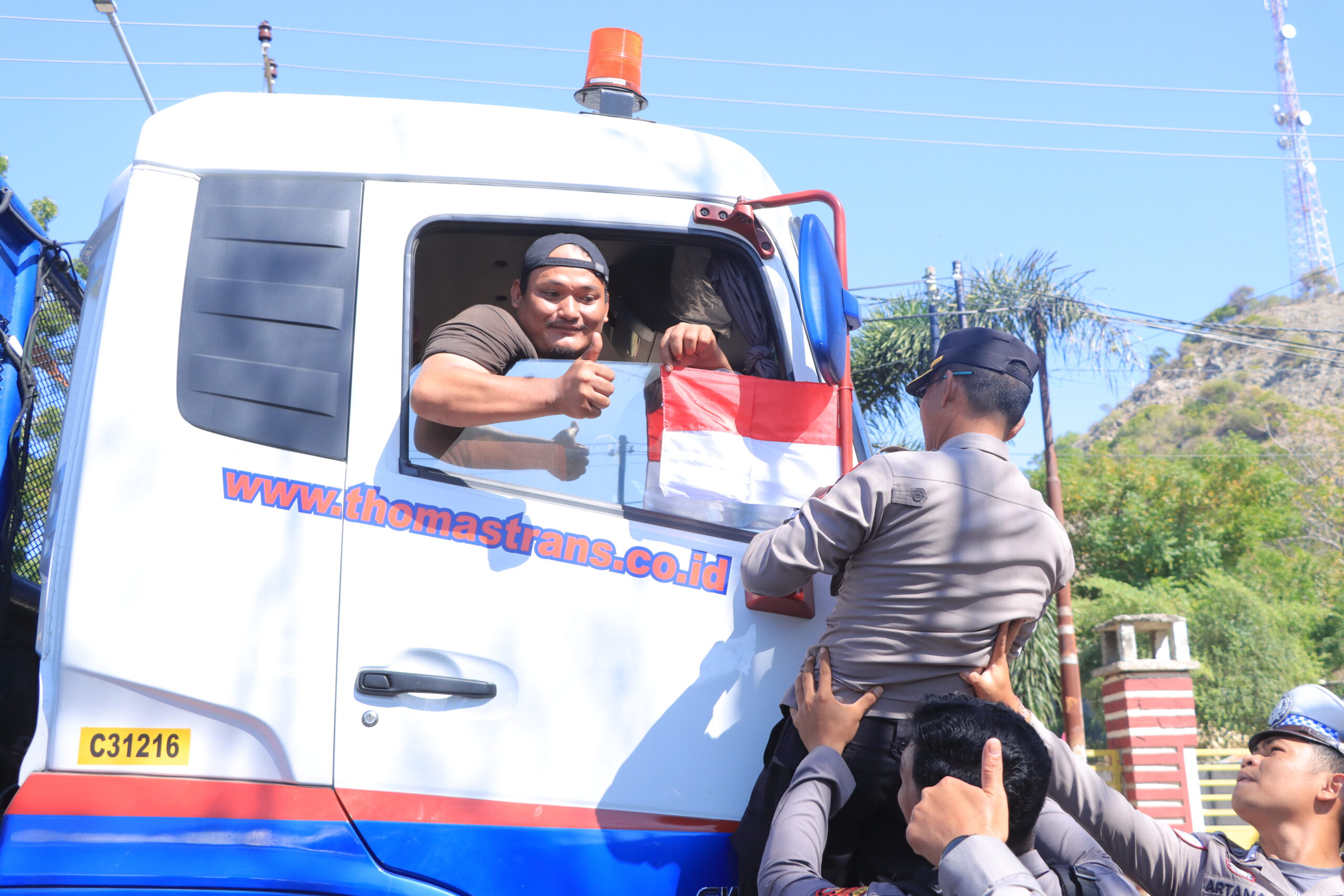 Pembagian bendera dilaksanakan di sejumlah titik strategis di wilayah hukum Polres Sumbawa Barat, dengan menyasar warga, pengendara, pedagang kaki lima, hingga pelajar.