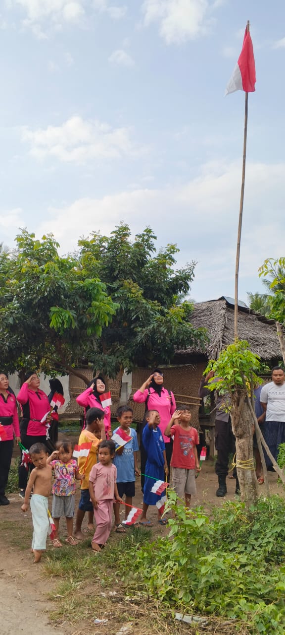 Lombok Utara — Dalam rangka memeriahkan dan menyambut HUT ke-80 Republik Indonesia, Ketua Bhayangkari Cabang Lombok Utara, Ny. Heny Agus Purwanta, didampingi Kapolsek Gangga IPTU Andi Kusnadi, membagikan bendera Merah Putih kepada masyarakat dan nelayan di Dusun Kerakas, Desa Segara Katon, Kecamatan Gangga, Senin (11/8/2025) pukul 16.00 WITA.