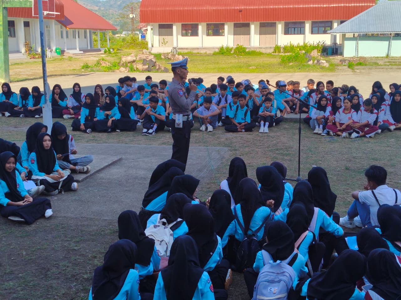 Lombok Utara – Satuan Lalu Lintas (Sat Lantas) Polres Lombok Utara melalui Unit Keamanan dan Keselamatan (Kamsel) melaksanakan kegiatan sosialisasi keselamatan berlalu lintas kepada siswa-siswi SMKN 1 Pemenang, Rabu pagi, 13/8/2025.