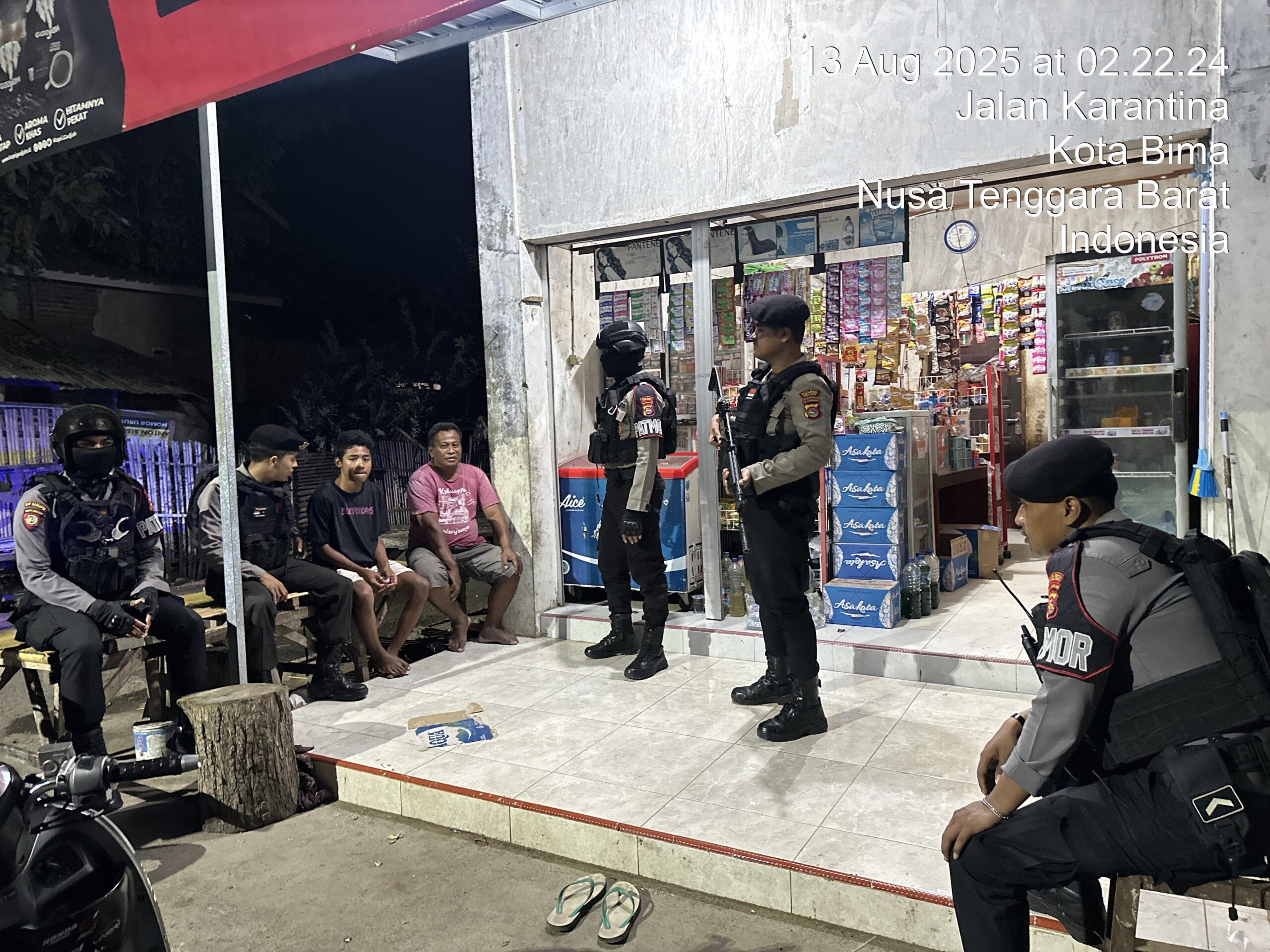 Kota Bima, NTB (13 Agustus 2025) – Sat Samapta Polres Bima Kota melaksanakan patroli malam guna mengantisipasi terjadinya tindak pidana 3C (curat, curas, dan curanmor) di wilayah hukumnya, Rabu (13/7/2025) pukul 02.00 WITA. Patroli menyasar dua titik lokasi, yakni wilayah Lewi Jambu dan BTN Tambana Kota Bima.