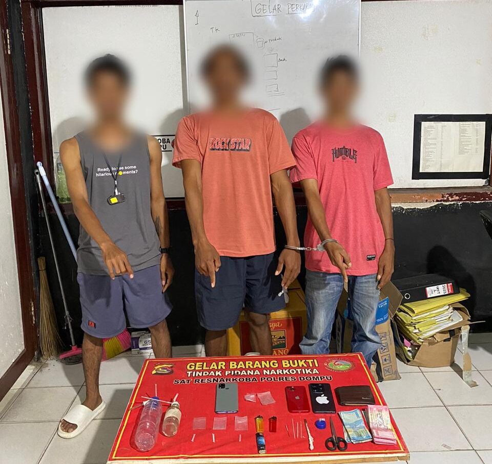 Satuan Reserse Narkoba (Satresnarkoba) Polres Dompu kembali menunjukkan komitmennya dalam memberantas peredaran narkotika di wilayah hukumnya. Pada Senin malam, 11 Agustus 2025, sekitar pukul 22.30 WITA, Tim Opsnal Satresnarkoba berhasil mengamankan tiga orang terduga pelaku penyalahgunaan narkotika jenis sabu-sabu di sebuah rumah di Dusun Buncu, Desa Mumbu, Kecamatan Woja, Kabupaten Dompu.
