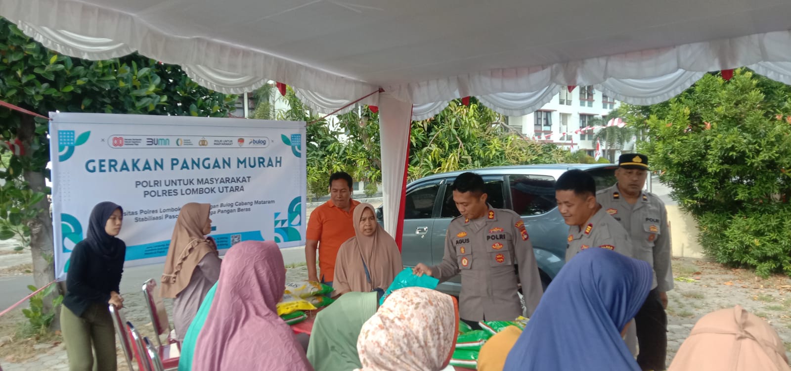 Kapolres Lombok Utara AKBP Agus Purwanta, S.I.K., menyampaikan harapannya agar kegiatan ini dapat membantu masyarakat mendapatkan kebutuhan pokok dengan harga terjangkau, sekaligus menjaga kestabilan harga di pasaran.