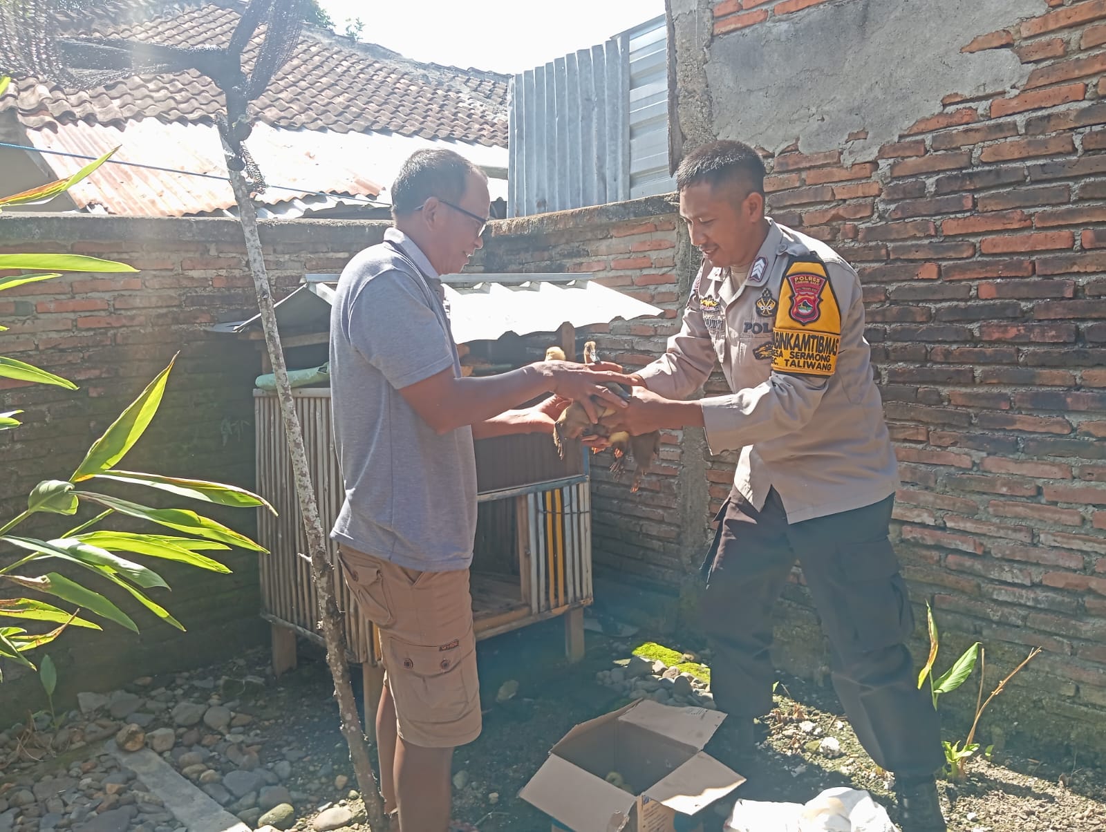 Dalam upaya mendukung ketahanan pangan dan meningkatkan perekonomian masyarakat, Bhabinkamtibmas desa sermong Brigadir Kamaludin memiliki gagasan tersendiri untuk melaksanakan kegiatan sosial dengan memberikan bantuan berupa bibit ternak bebek kepada warga binaannya. Rabu,(20/08/2025)