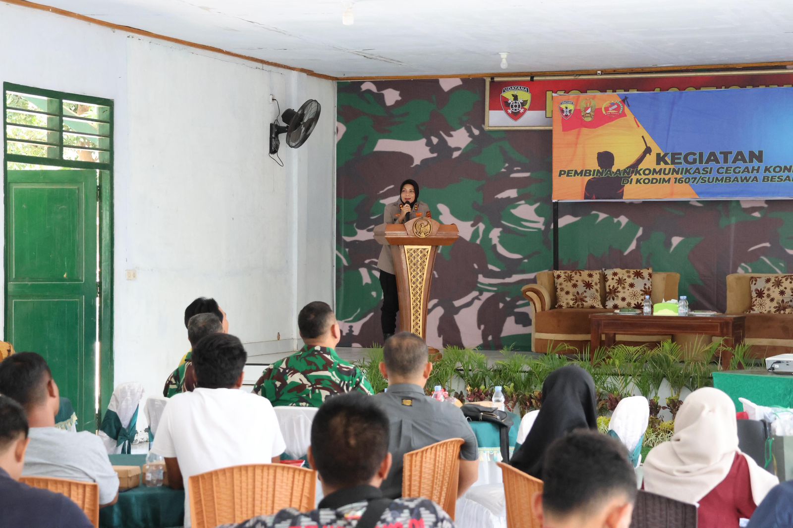 Sumbawa Besar, NTB — Kodim 1607/Sumbawa menggelar kegiatan Pembinaan Komunikasi (Binkom) Cegah Konflik Sosial di Aula Serbaguna Makodim 1607/Sumbawa pada Kamis, 18 September 2025. Acara ini merupakan wujud sinergi antara TNI, Polri, pemerintah daerah, dan masyarakat untuk menjaga stabilitas keamanan di wilayah Sumbawa.