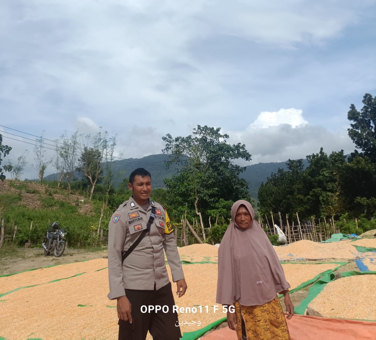Dalam kunjungan yang berlangsung pukul 10.00 Wita tersebut, Brigadir Wahyudin menyapa serta memberikan pendampingan kepada warga yang sedang menjemur jagung sebagai bagian dari dukungan terhadap Program Ketahanan Pangan Nasional menuju Indonesia Emas.