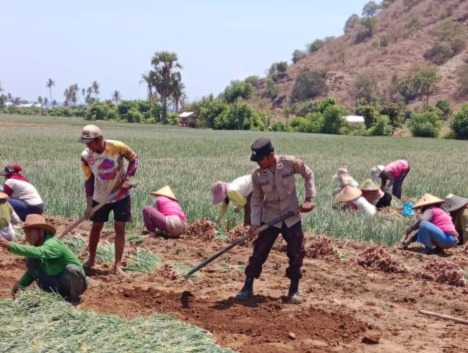 Bima, NTB (21 Oktober 2021) – Wujud kedekatan dan kepedulian terhadap masyarakat binaannya, Bhabinkamtibmas Desa Kalajena, Kecamatan Wera, Kabupaten Bima, Polsek Wera, Aipda Adi Setiawan, turun langsung membantu warga binaan yang sedang melaksanakan panen bawang merah.
