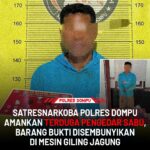 Satresnarkoba Polres Dompu berhasil mengungkap kasus penyalahgunaan narkotika di Lingkungan II, Kelurahan Monta Baru, Kecamatan Woja, Senin (22/9/2025). Seorang petani berinisial S (45) diamankan saat mencoba melarikan diri. Dari hasil penggeledahan, petugas menemukan puluhan paket sabu yang disembunyikan di dalam mesin giling jagung Berita|September 26, 2025September 26, 2025by admin Barang bukti yang diamankan antara lain sabu dengan berat bruto 9,85 gram